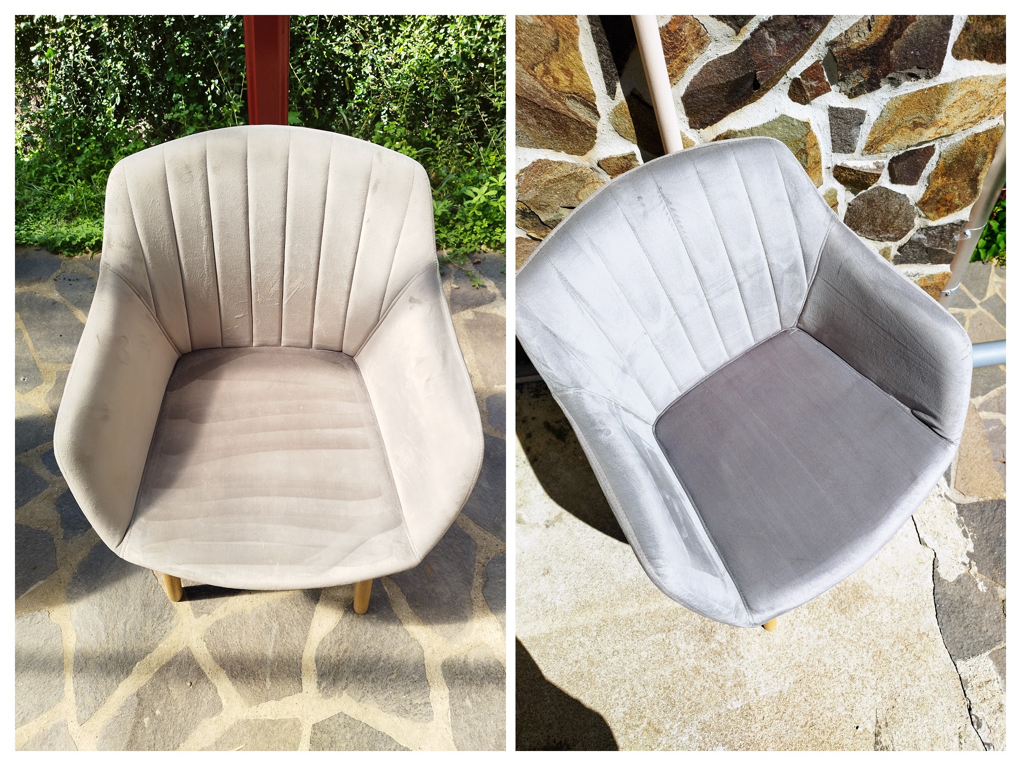 3. Először enyhén beáztatom a felület, majd hagyom pár percet hatni a tisztítószert. Ezután finoman átgőzölöm a felületet, majd pedig kiszívom a feloldott szennyeződéseket. A folyamatot addig ismétlem, míg meg nem tisztul a kárpit. Szükség esetén használok külön folteltávolítót. A folyamat végén még egyszer átgőzölöm a teljes kezelt felületet.